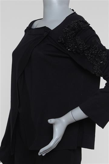 - Blusa em tricot leve e macio à base de seda com viscose- Azul marinho intenso- Modelagem reta- Decote canoa amplo e alongado- Ombros estruturados com ombreiras internas e bordados decorativos- Mangas longas retas- Fenda transpassada e alongada frontal- Sutil transparência- Comprimento regular- Fechamento frontal por abotoamento duplo com botões forrados