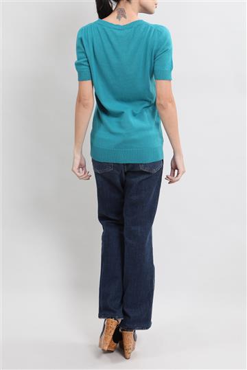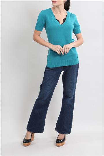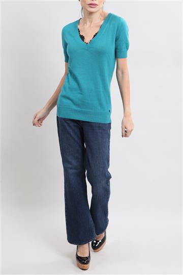 - Blusa em tricot leve- Preto- Modelagem reta e ajustada ao corpo- Decote em 'V' amplo com nó frontal decorativo- Mangas longas- Detalhes canelados- Comprimento regular