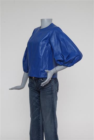 - Azul royal total- Blusa possui modelagem reta com decote arredondado alto- Mangas 7/8 bufantes com pregueado duplo- Pences e recortes aparentes para melhor ajuste ao corpo- Comprimento regular- Fechamento posterior por zíper