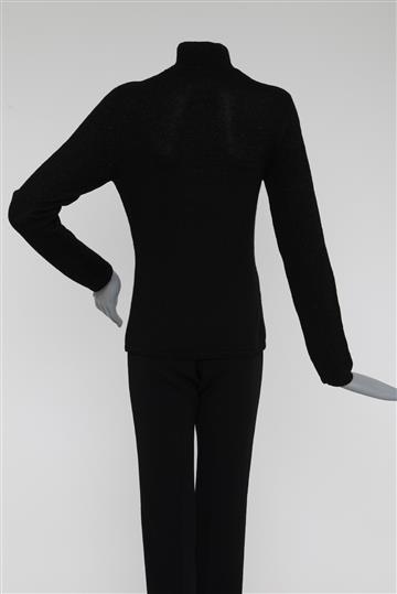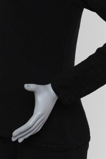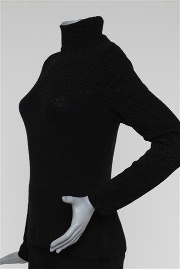 - Blusa em tricot encorpado e com boa elasticidade- Preto total com leve brilho- Modelagem reta e ajustada ao corpo- Gola alta arredondada- Mangas longas retas- Tramado com fios de lurex aplicados para sutil brilho decorativo- Comprimento regular