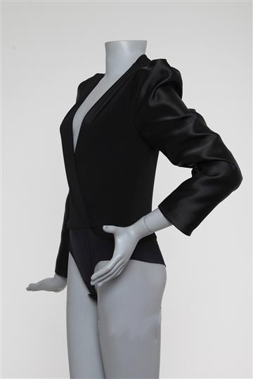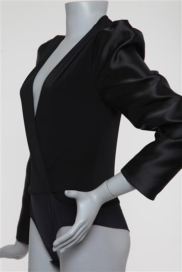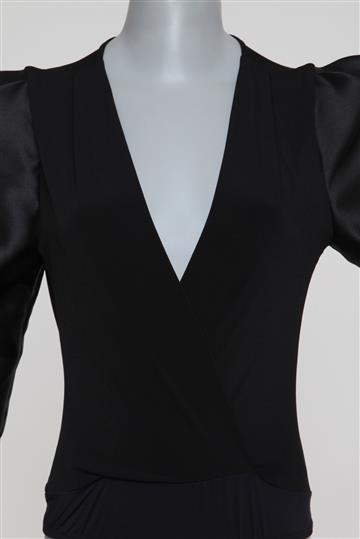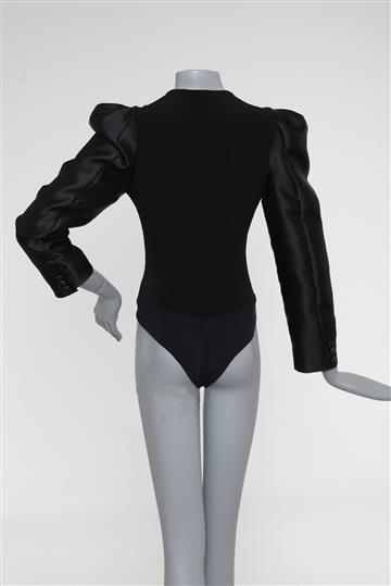 - Mangas longas bufantes e encorpadas em tecido acetinado estilo tafetá