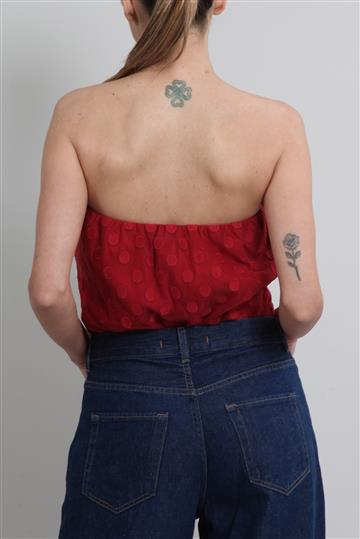 - Decote reto estilo tomara-que-caia com elasticidade interna