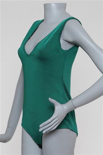 - Body em tricot à base de viscose com boa elasticidade- Verde bandeira total- Modelagem ajustada ao corpo- Decote alongado em 'V' frontal e traseiro- Cavas laterais amplas- Cavas inferiores com sutil elasticidade- Fechamento inferior por colchetes de encaixe- Comprimento curto
