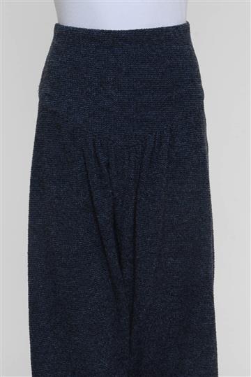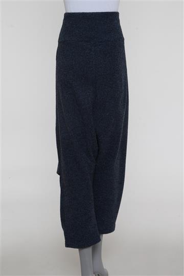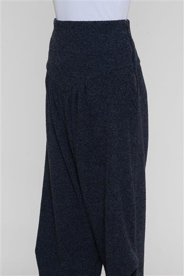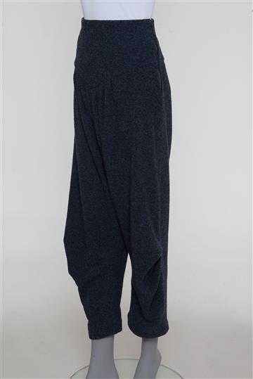 - Calça em tecido texturizado e de toque macio- Azul mesclado com detalhes em preto- Modelagem reta e ampla estilo saruel- Cintura alta com cós reto- Pala anatômica alongada com pregas aparentes- Pernas amplas com franzidos laterais- Barras afuniladas e ajustadas às pernas- Comprimento ligeiramente mais curto- Fechamento lateral por zíper tratorado aplicado