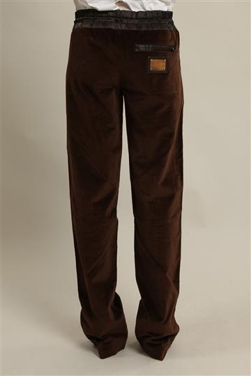- Um bolso posterior com zíper e plaqueta metálica decorativa