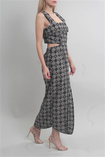 - Cintura regular com cós reto, elasticidade e amarração frontal para melhor ajuste ao corpo