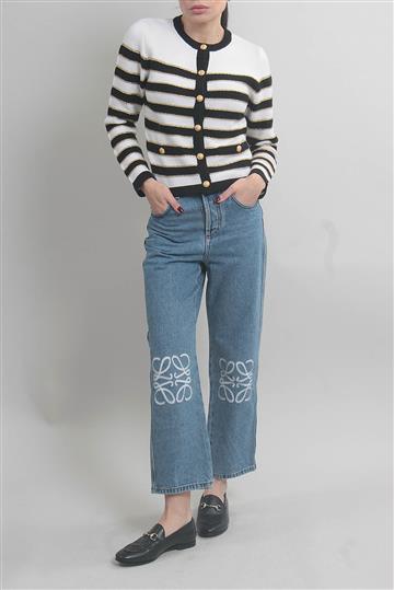 - Azul mediano e ligeiramente estonado com detalhes em branco
