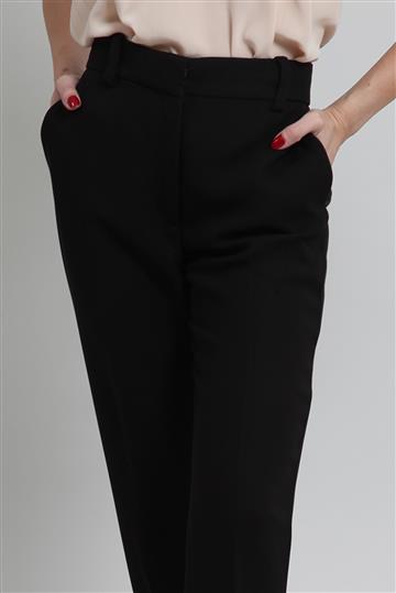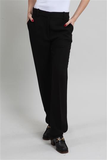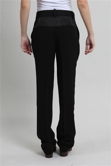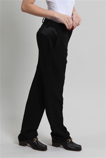 - Calça em tecido fluido e encorpado estilo alfaiataria- Preto total- Modelagem reta e estruturada- Cintura alta- Cós reto com passantes- Dois bolsos laterais funcionais- Dois bolsos traseiros sem funcionalidade- Pala posterior e faixas laterais em cetim- Comprimento regular- Fechamento frontal por colchete de encaixe e zíper aplicado