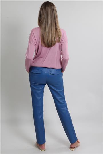 - Calça em couro macio e encorpado- Azul royal total- Modelagem reta e estruturada- Cintura mediana- Cós reto com passantes- Dois bolsos laterais funcionais- Dois bolsos traseiros com abas para fechamento- Faixas laterais pespontadas- Recortes inferiores- Comprimento regular- Fechamento frontal por colchete de encaixe e zíper aplicado