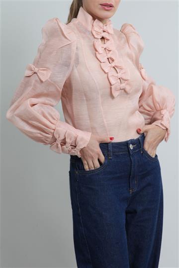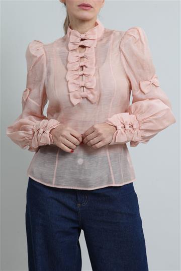 - Peplum inferior com pregas aparentes