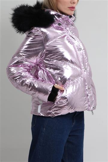 - Capuz removível superior com pelos sintéticos aplicados ao redor
