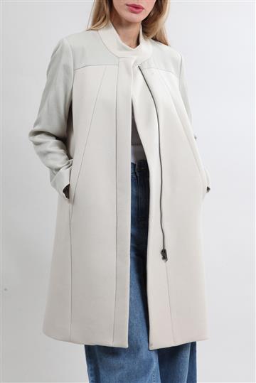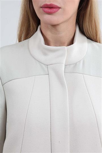 - Fechamento frontal por zíper oculto sob a vista central da peça