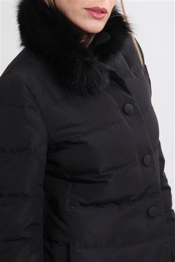 Casaco Prada 7/8 Puffer Gola com Pele Preto