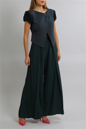 - Casaqueto em tecido encorpado estilo alfaiataria com detalhes em seda