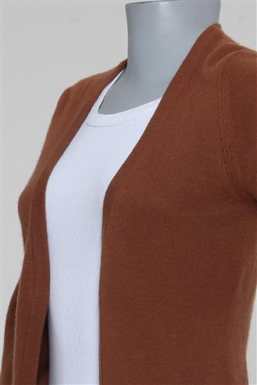 - Cardigan em lã 100% cashmere- Marrom claro total- Modelagem reta e ligeiramente acinturada- Abertura frontal alongada- Mangas longas retas- Acabamento canelado aparente- Comprimento regular- Sem fechamento