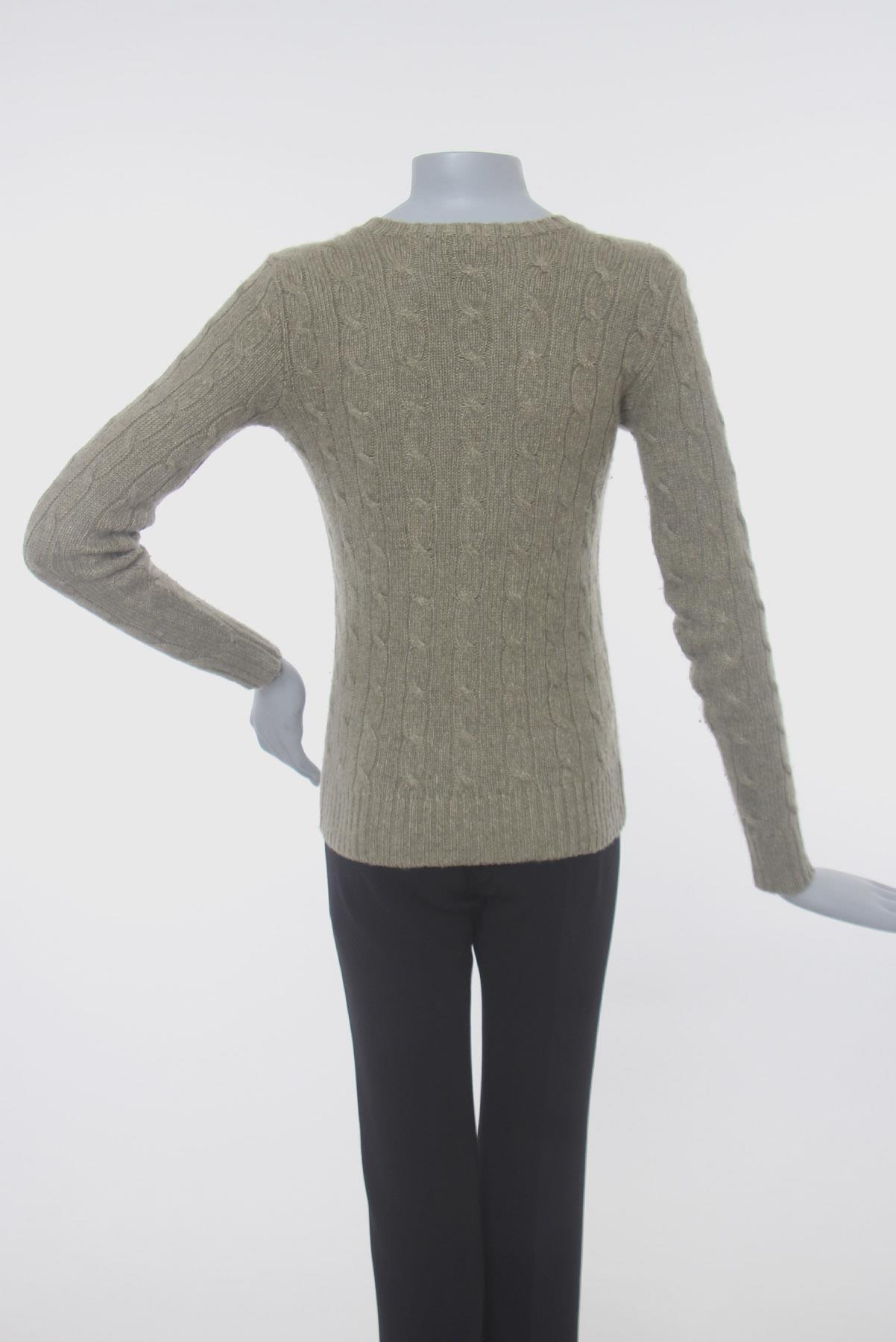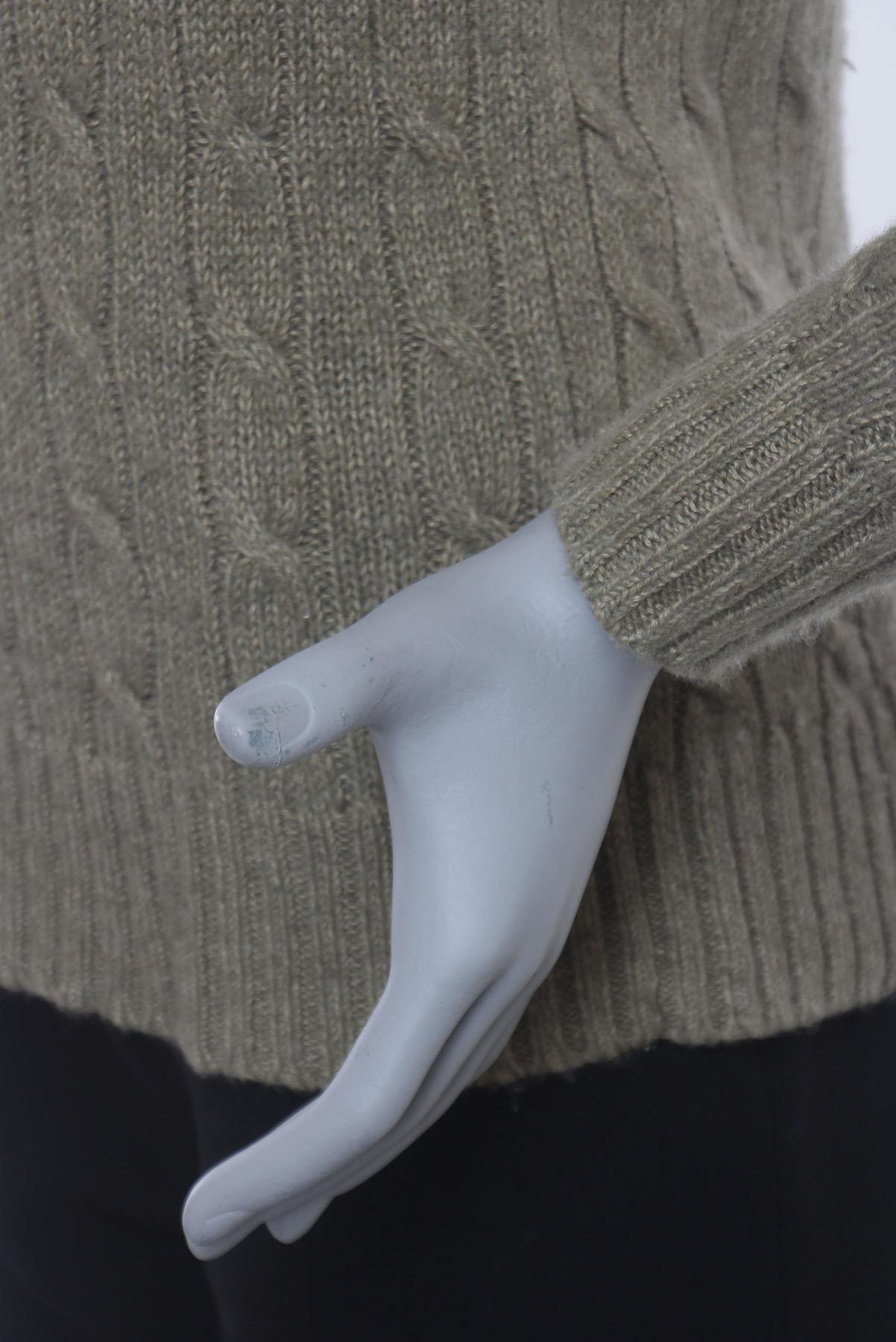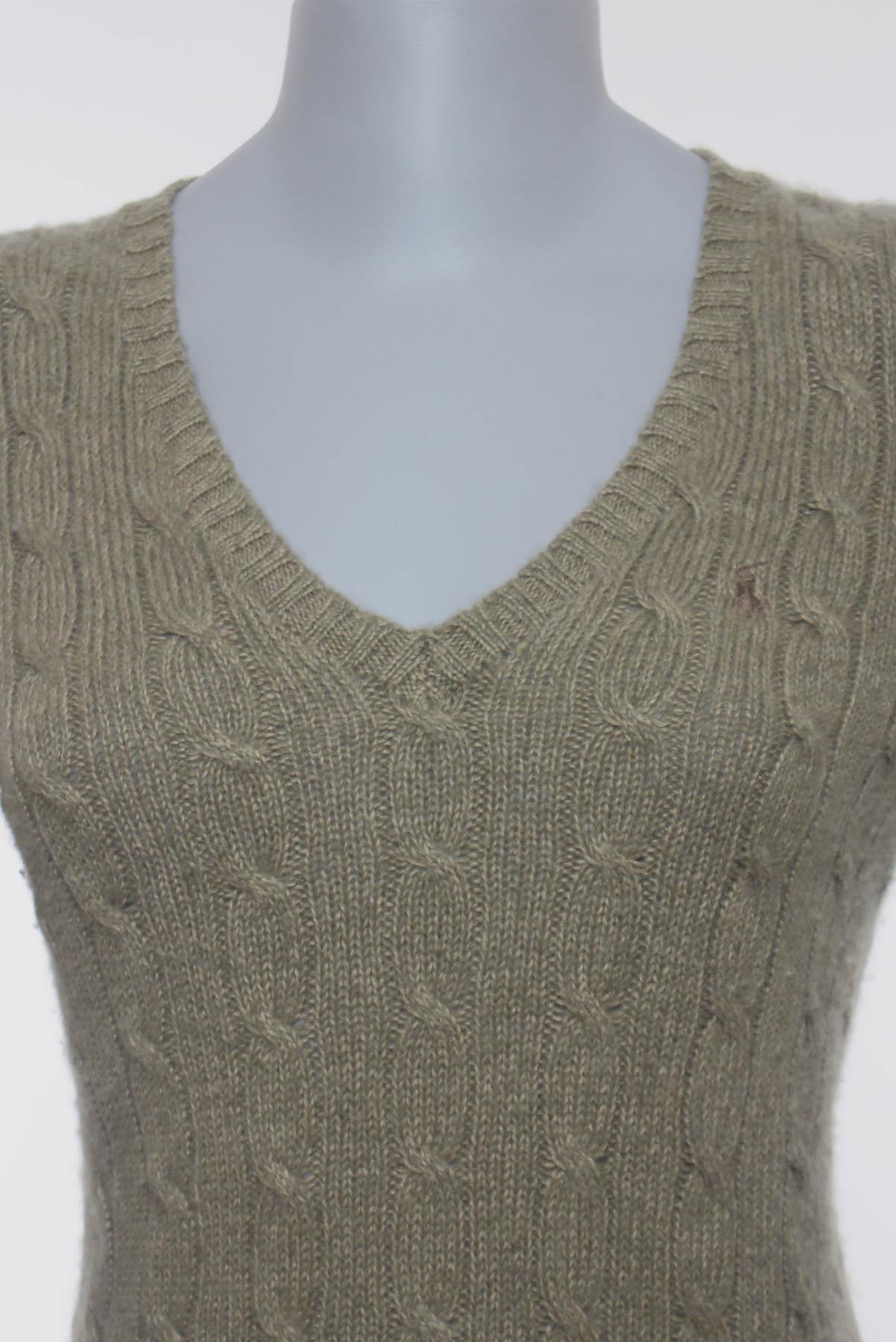 - Suéter em cashmere e linho - Verde militar - Modelagem ajustada ao corpo - Decote em 'V' - Mangas longas - Punhos e barra canelados - Tramado decorativo clássico de tranças