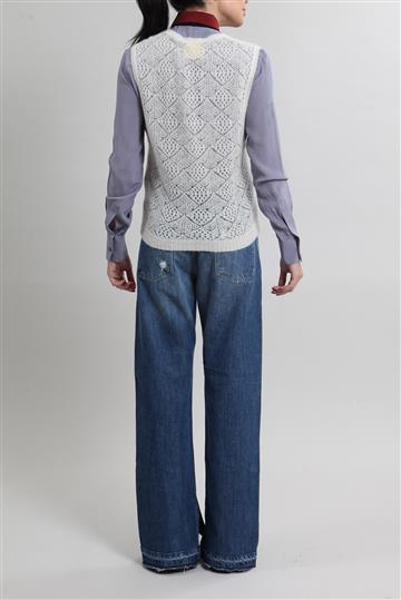 - Tramado ornamentado por motivos geométricos e pequenos recortes vazados