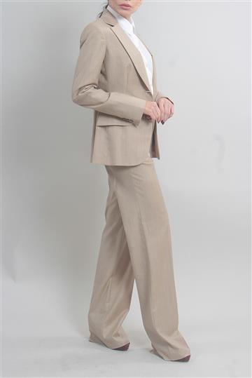 Conjunto Framed Corset e Calça Risca de Giz Marrom