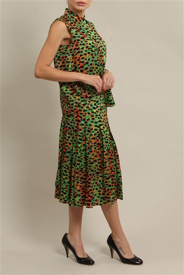 Conjunto Christian Dior Camisa e Saia Animal Print Colorido