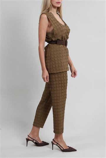 Conjunto Paula Raia Calça, Top, Regata e Cinto Camurça Marrom