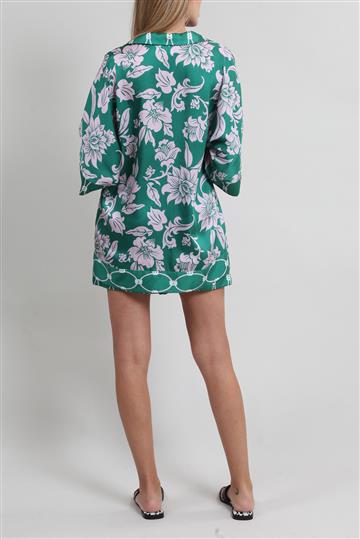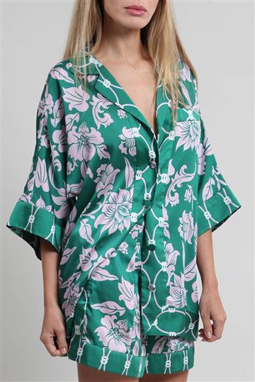 - Estampa total com motivos florais e arabescos