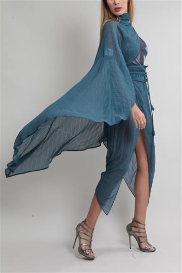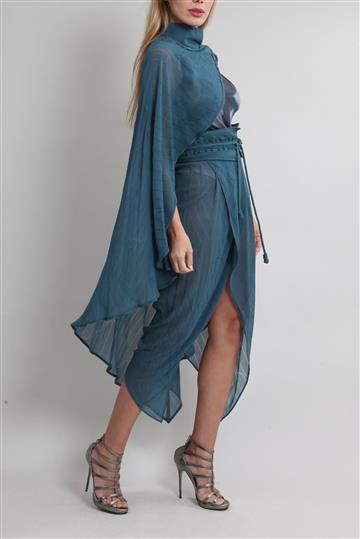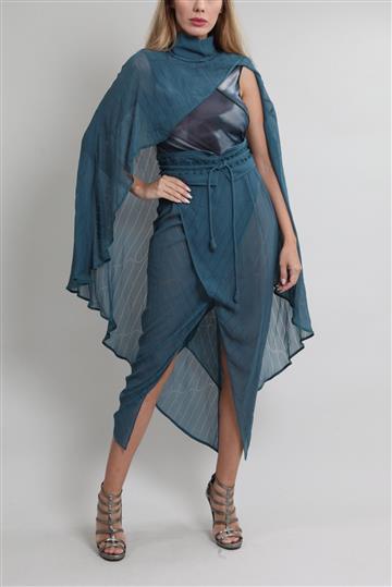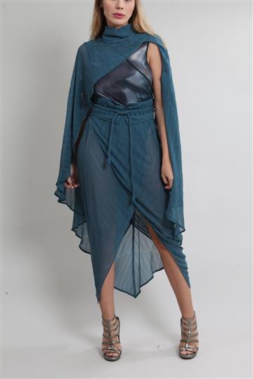 - Conjunto em tecido leve e fluido com peça em tule elástico e maleável