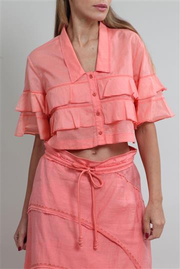 - Babados aplicados com pregas aparentes
