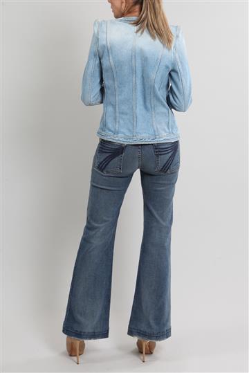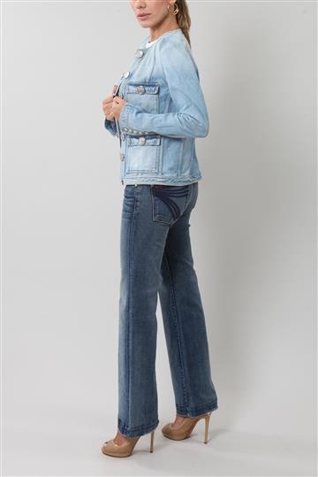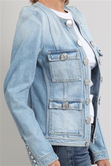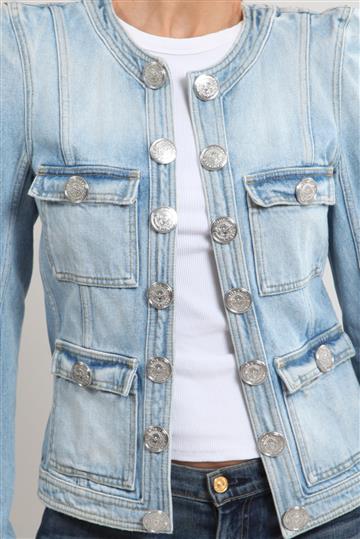 - Fechamentos frontal por abotoamento com botões metálicos ornamentados