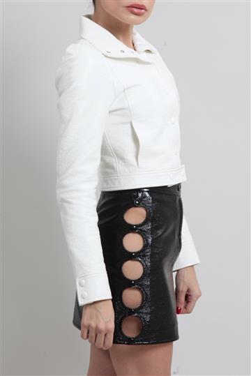 - Jaqueta em couro texturizado e encorpado de aspecto envernizado