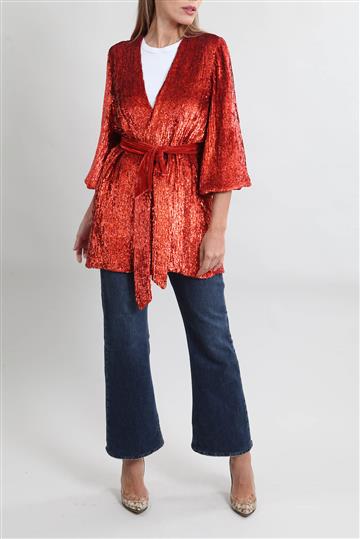- Kimono em viscose leve inteiramente revestida por paetês