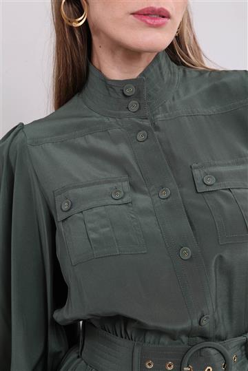 - Recorte central com elasticidade e cinto para melhor ajuste ao corpo