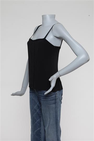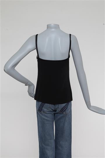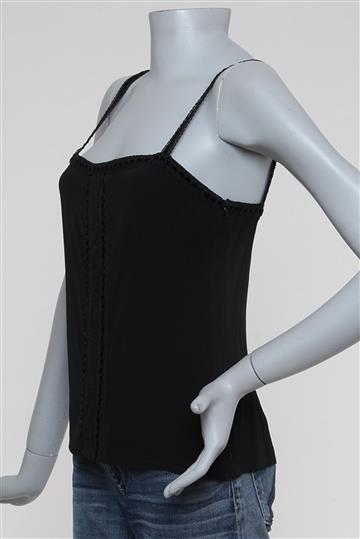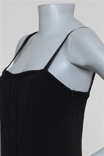 - Regata em rayon e acetato- Preto - Modelagem reta e ligeiramente acinturada- Decote reto frontal e traseiro- Alças finas rendadas com fita central em veludo sem regulagem- Recorte central com acabamento por passamanaria rendada- Comprimento regular- Fechamento lateral por zíper invisível aplicado