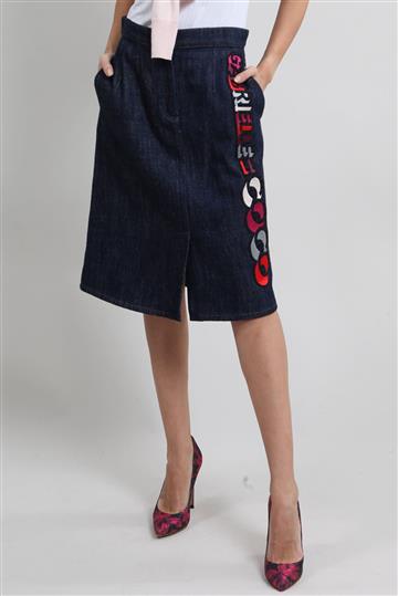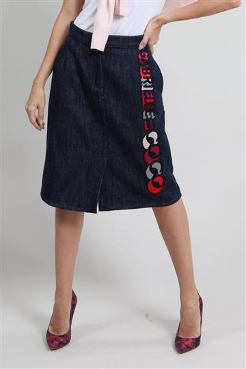 - Saia em jeans encorpado