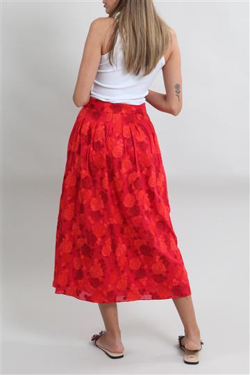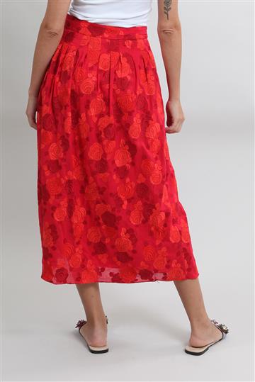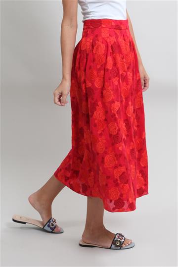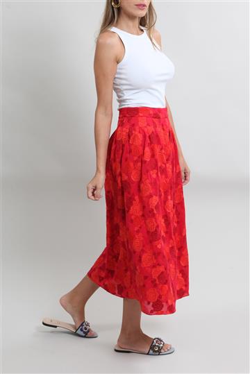 Saia Cris Barros Bordada Floral Vermelho