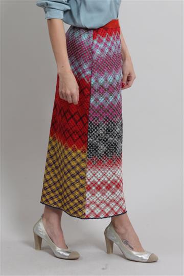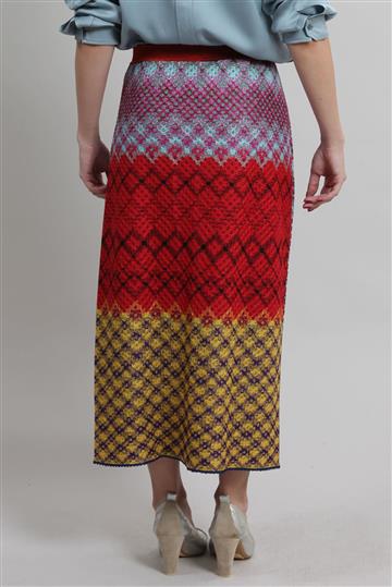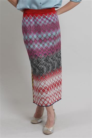 - Saia em tricot leve com fios de lurex aplicados à trama