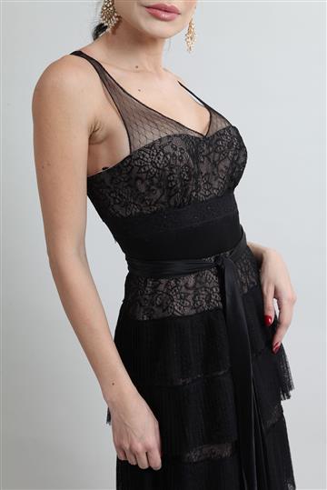 - Pala central em cetim com amarração posterior para ajuste ao corpo