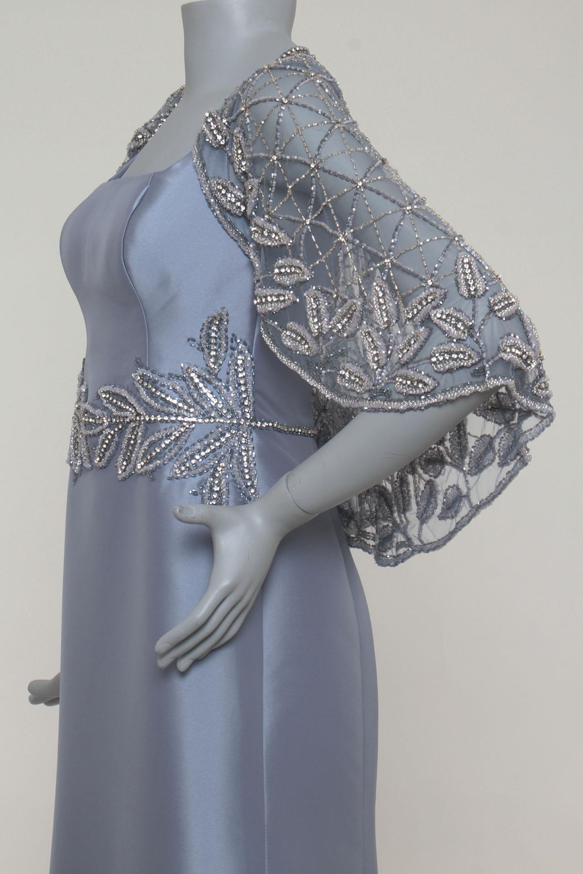 - Acompanha pelerine de tecido leve, com transparência total e bordados decorativos por toda a estrutura