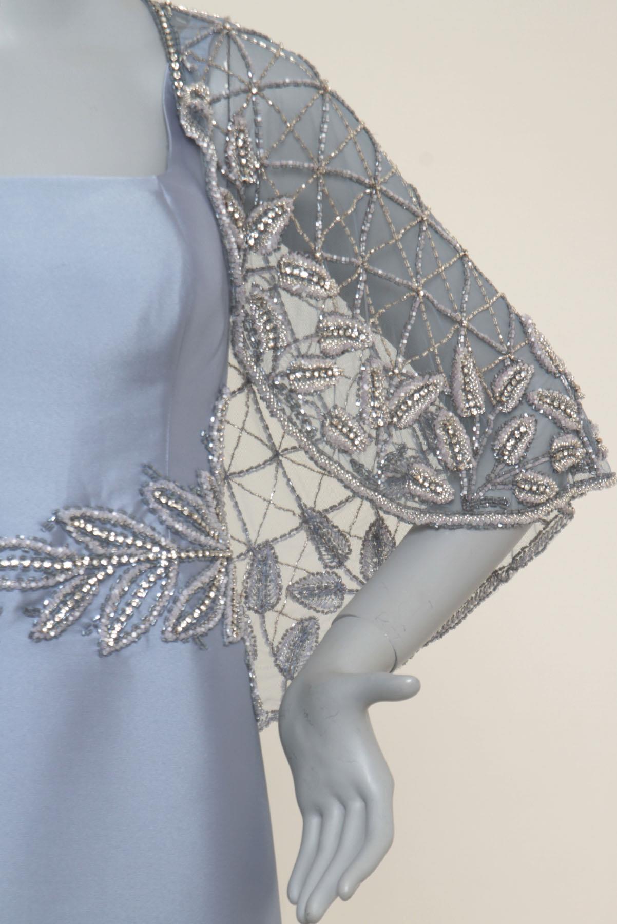 - Bordado central de folhagens com pequenos canutilhos aplicados