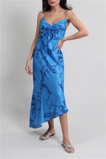 - Vestido em tecido acetinado e fluido
