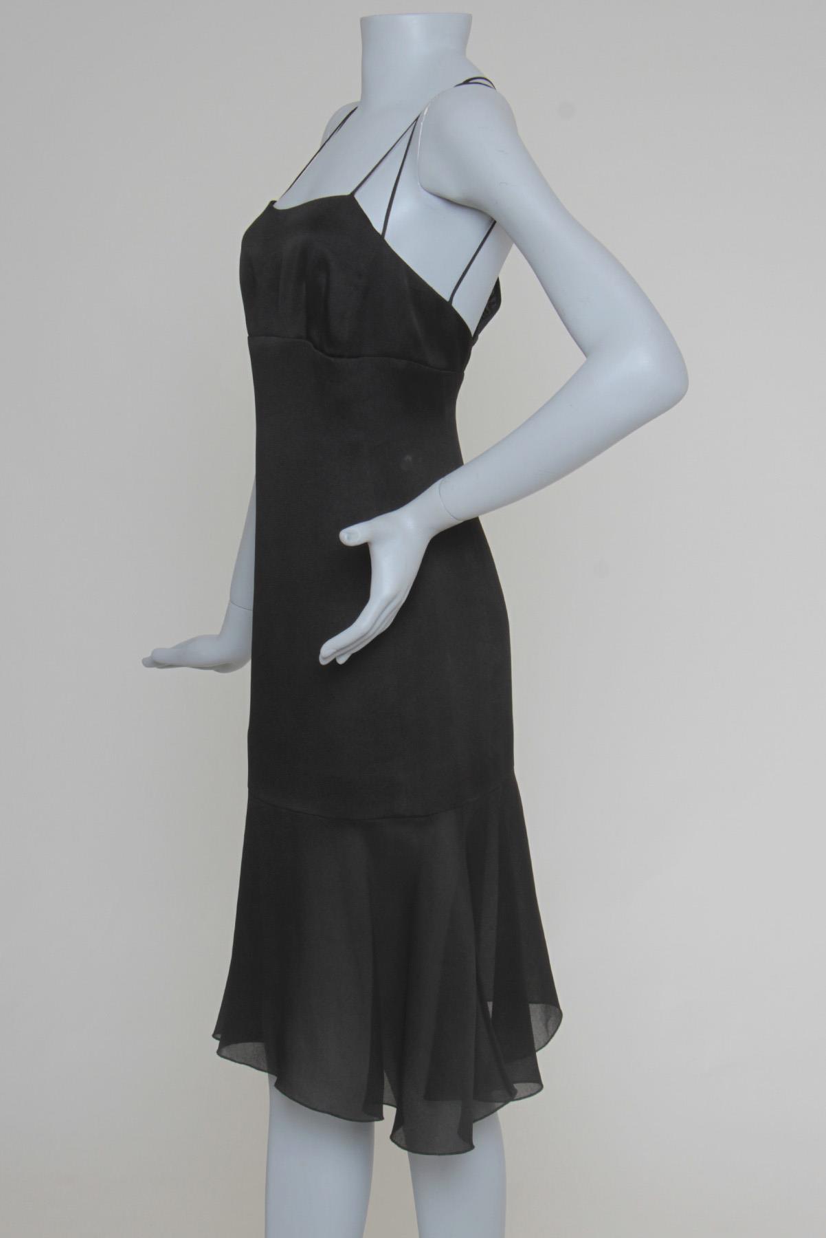 - Vestido em seda encorpada- Preto- Modelagem evasê em 'A'- Decote reto levemente arredondado- Alças finas duplas sem regulagem- Abertura traseira decorativa- Babado inferior amplo- Comprimento midi- Fechamento posterior por zíper invisível