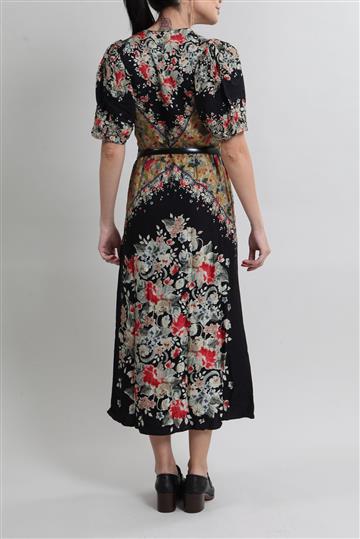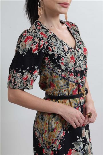 - Mangas curtas ligeiramente bufantes com pregueado superior