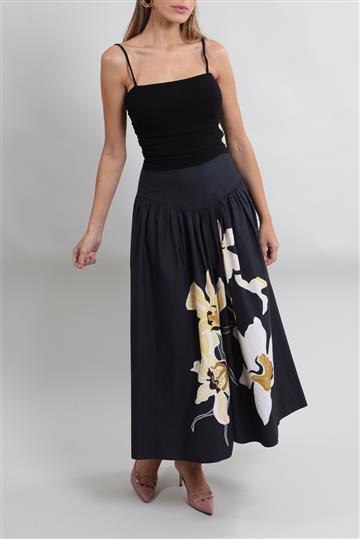 - Saia em camadas com pregas aparentes