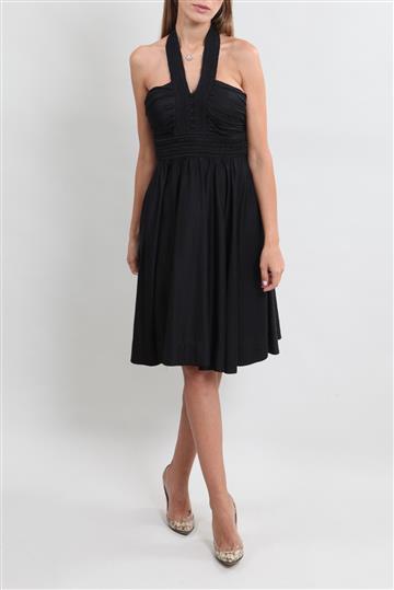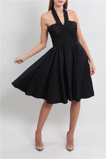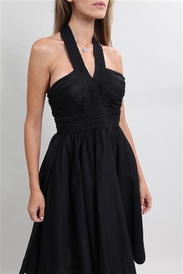 - Vestido em algodão- Preto- Modelagem godê de comprimento curto- Decote frente única- Decote traseiro amplo- Abotoamento frontal decorativo- Pregas e nervuras decorativas- Saia ampla- Fechamento lateral por zíper invisível