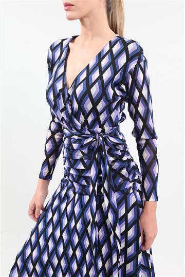 - Pala drapeada e acinturada central com amarração para melhor vestibilidade