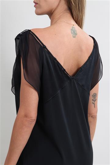 - Pequenos passantes aplicados aos decotes com tira decorativa central