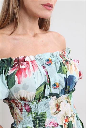 - Mangas curtas bufantes com pregueado duplo e punhos elásticos