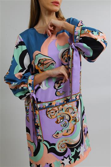 - Mangas 3/4 sutilmente bufantes com pregueado inferior