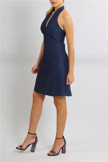 - Fechamento posterior por zíper aplicado e abotoamento delicado