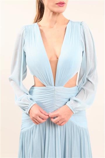 - Decote em 'V' alongado com faixa de tule interna para maior cobertura