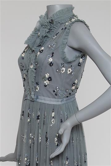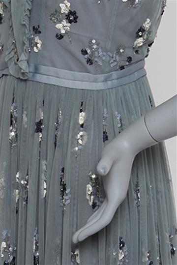 - Recorte central com faixa de gorgurão dupla e pregas aparentes
